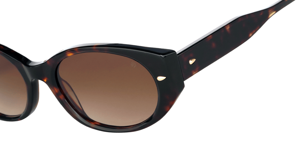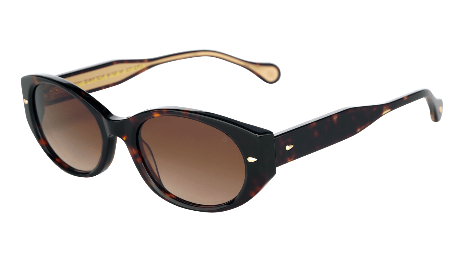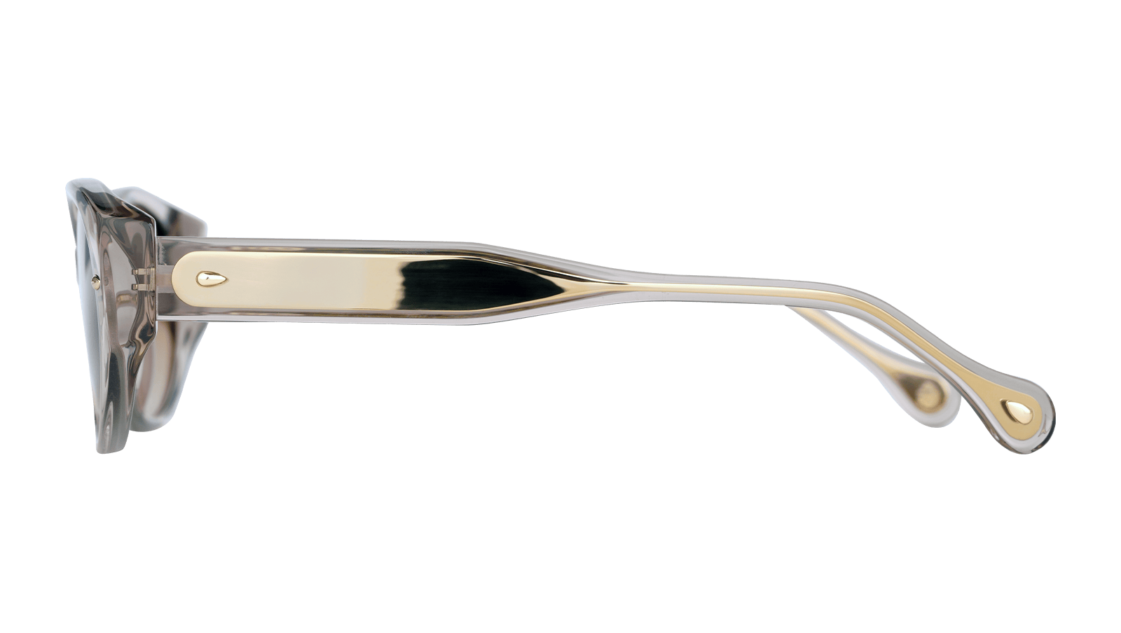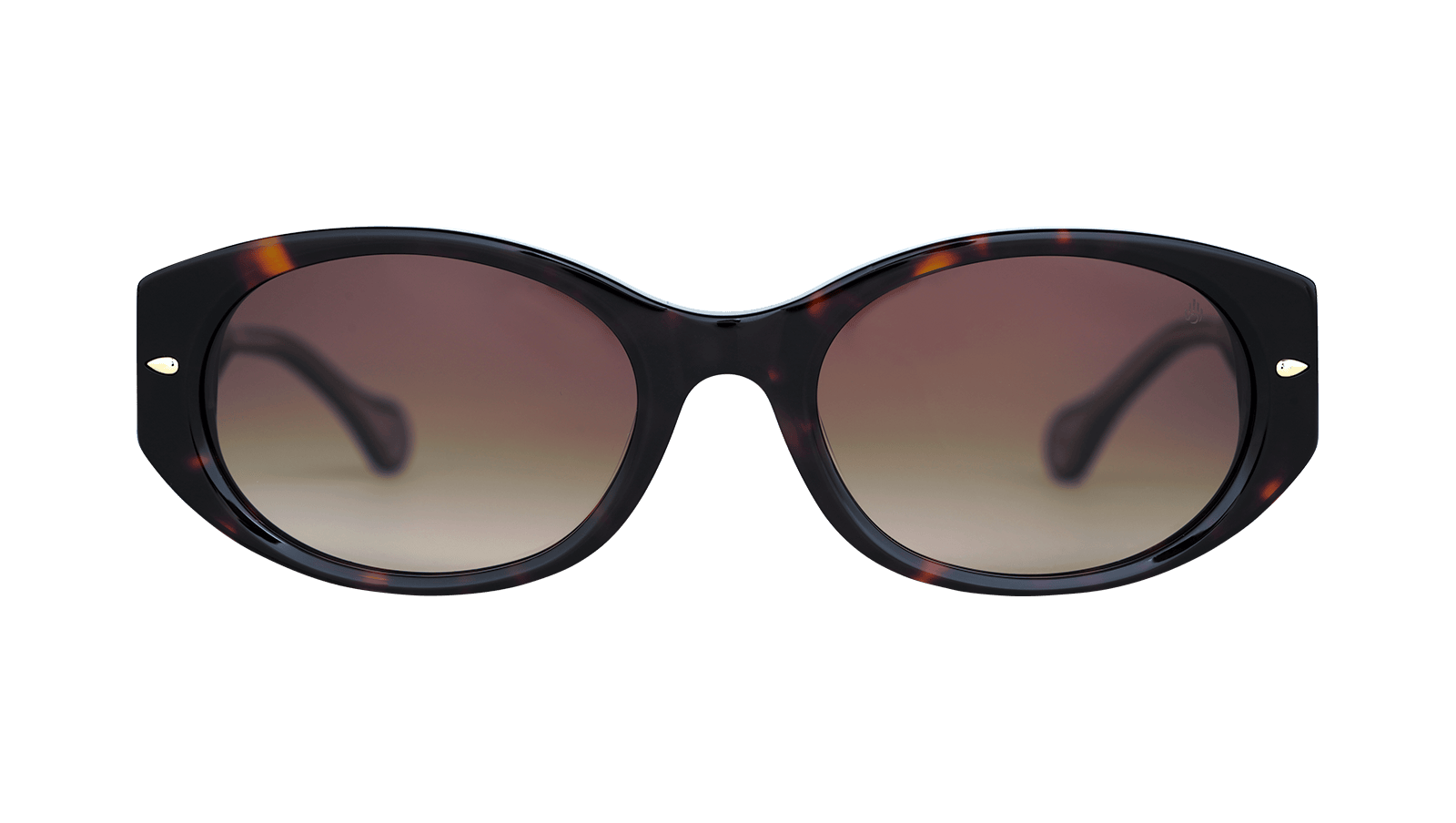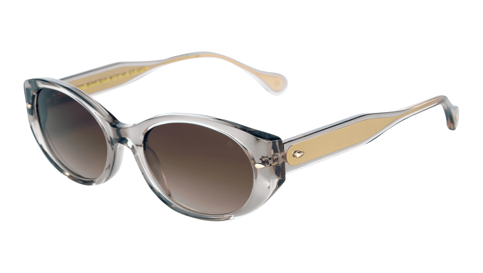Monture en acétate noir et cristal, métal argenté, verres gris dégradé.