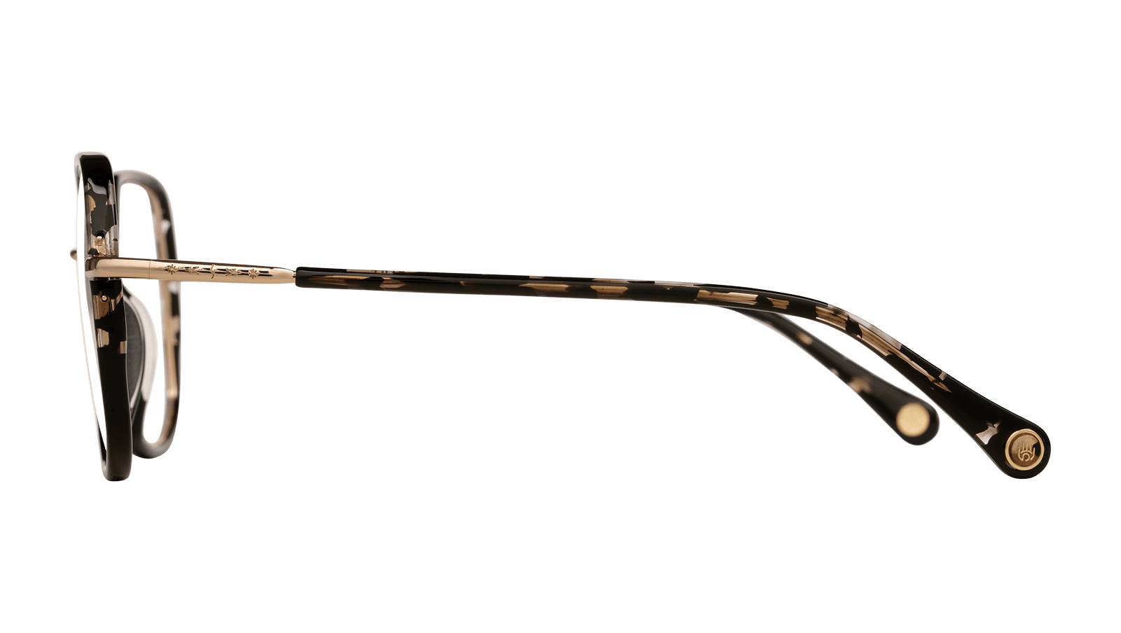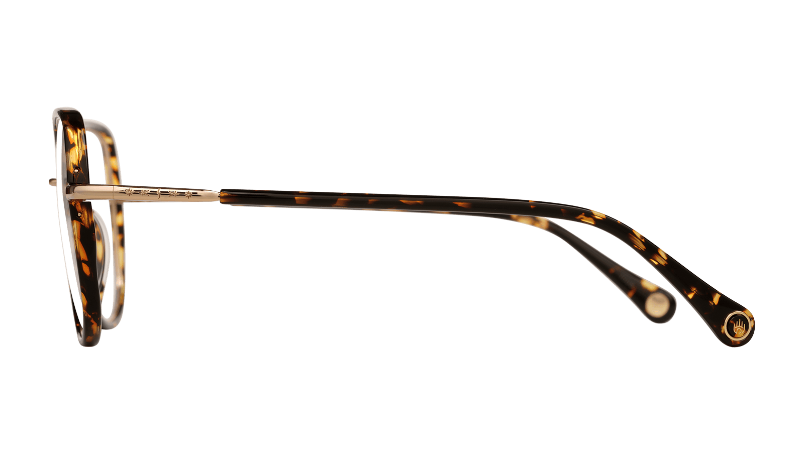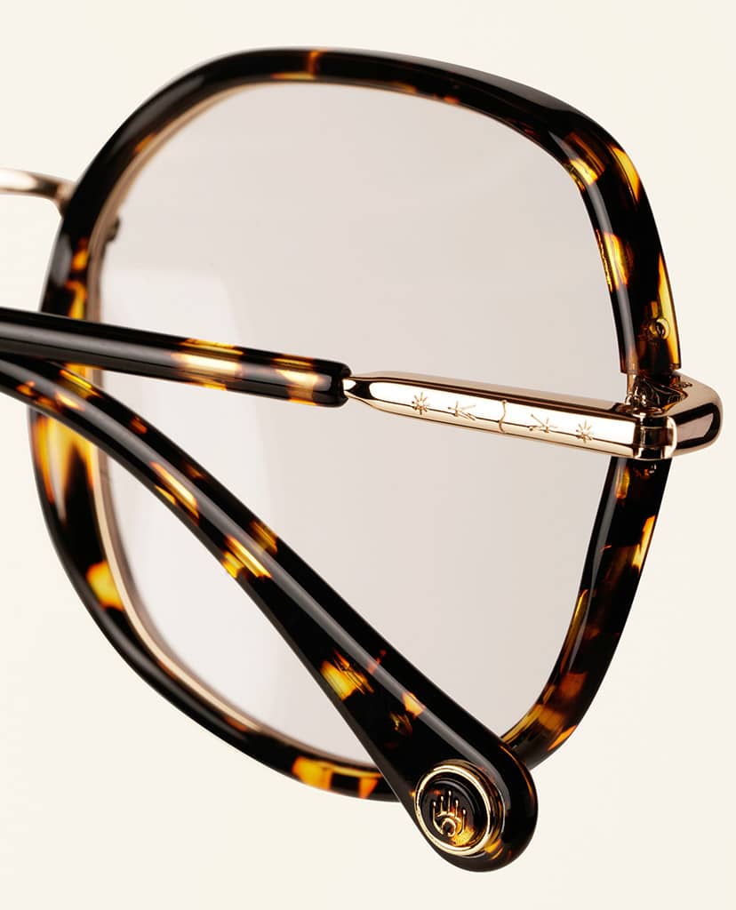 Monture en Acétate écaille brun doré et métal doré.