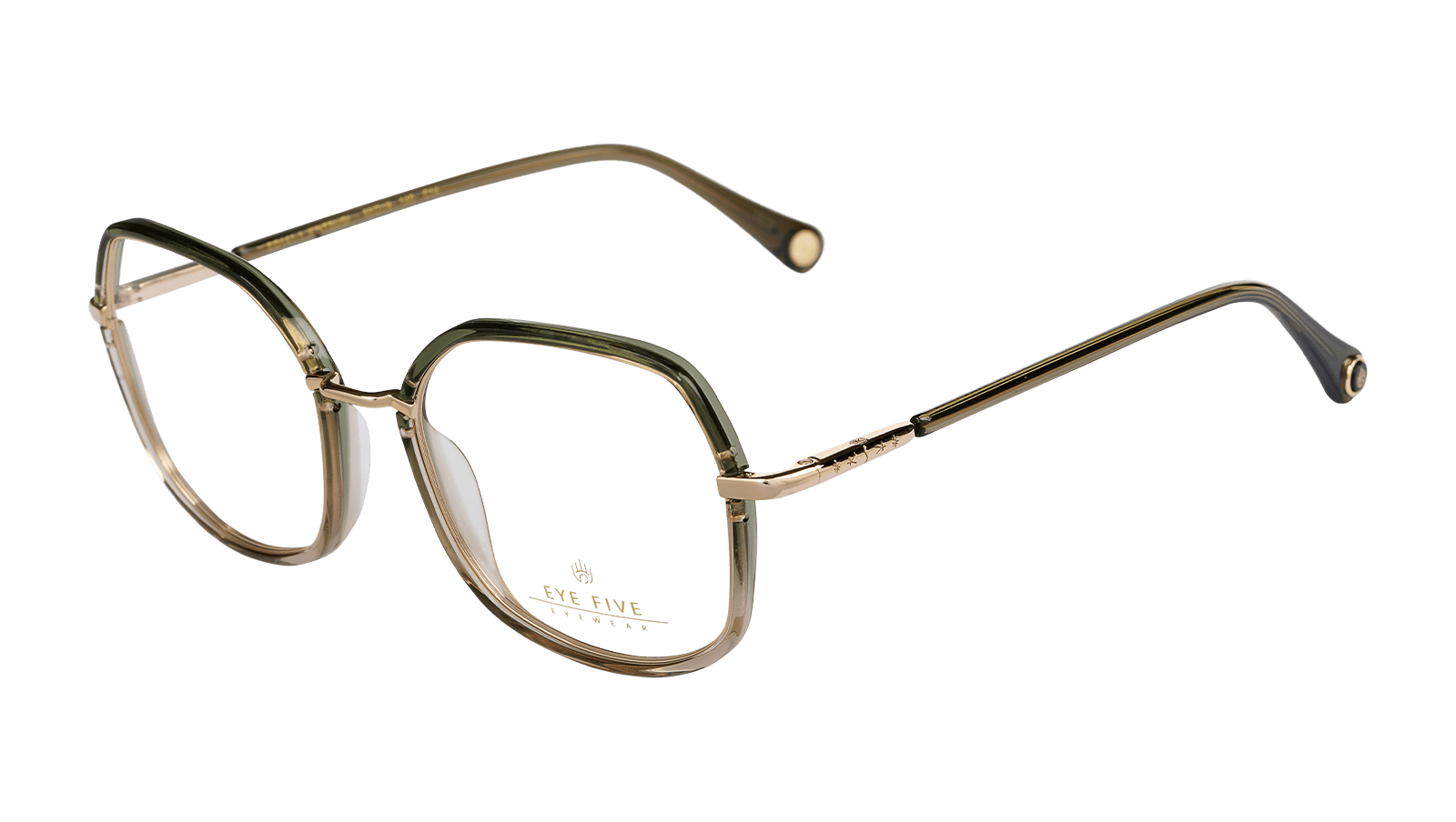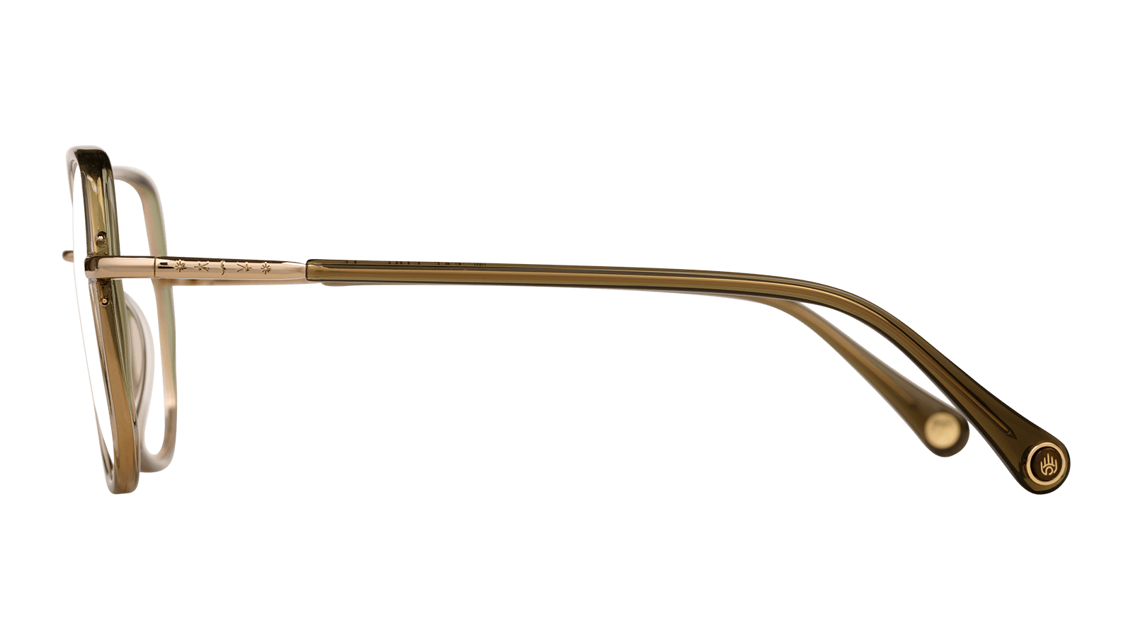 Monture en acétate vert olive dégradé et métal doré.