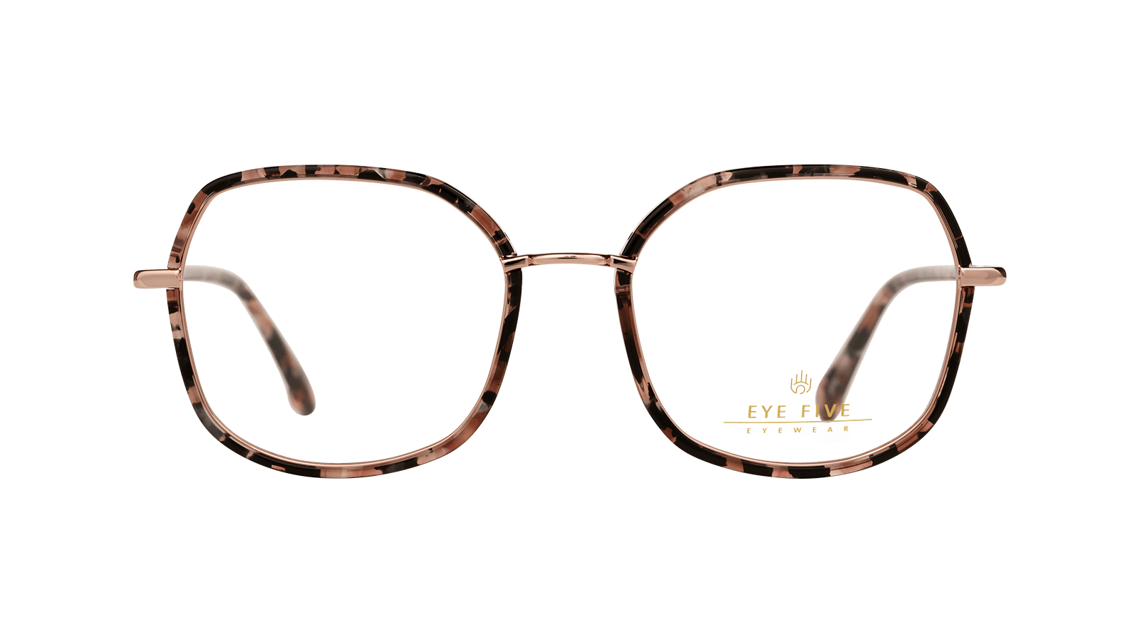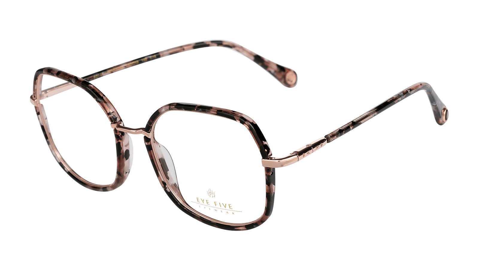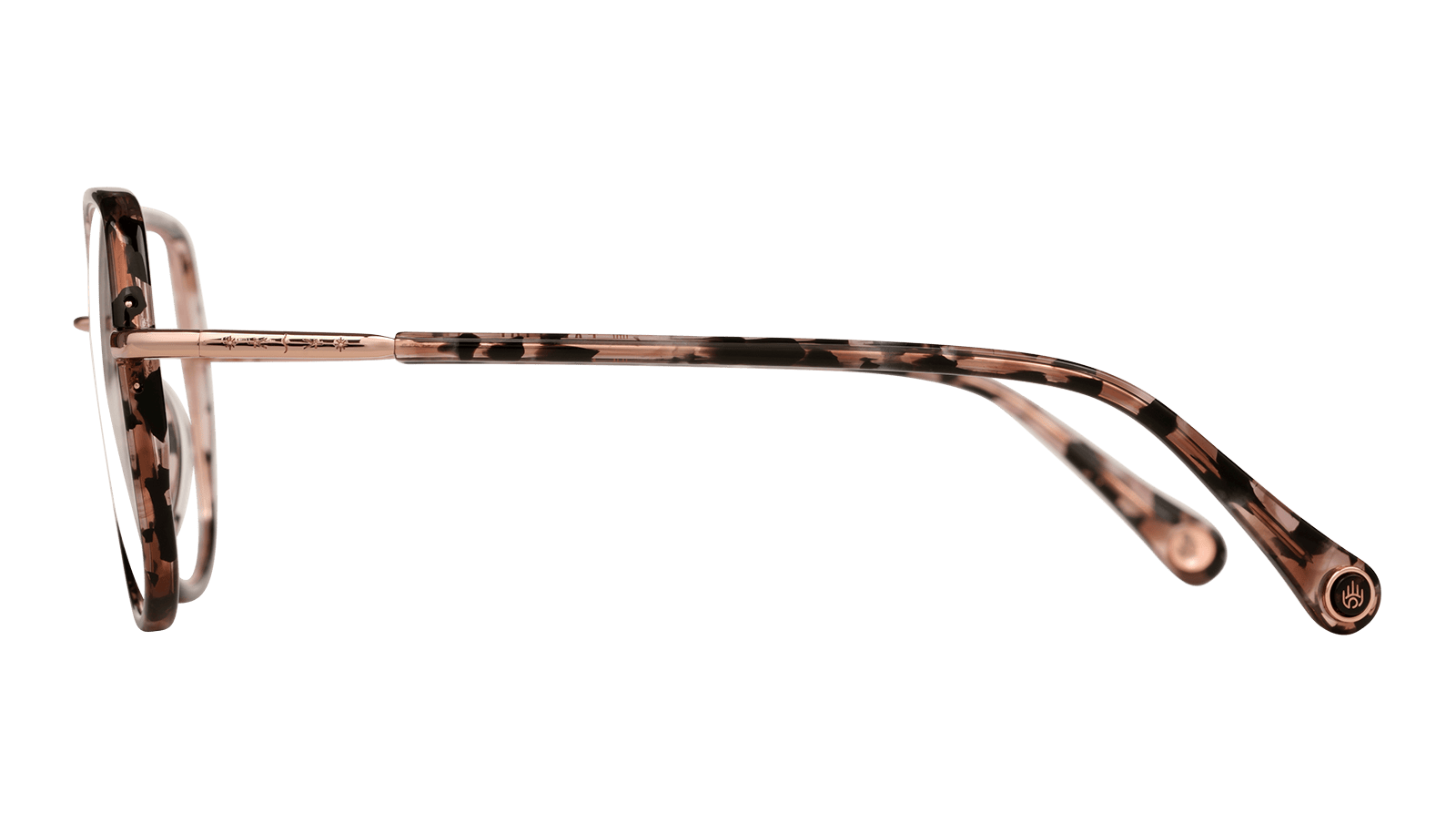 Monture en acétate écaillé rose et métal rosé.