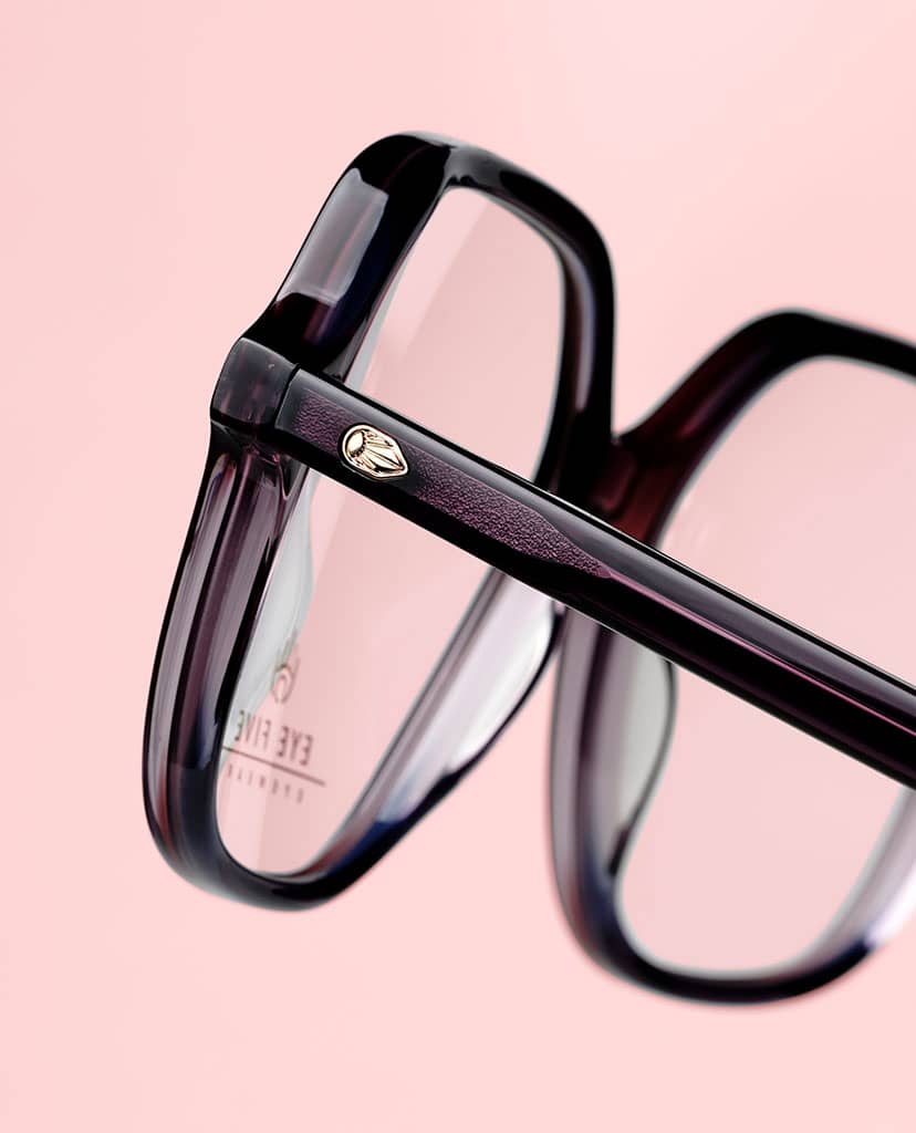 Branches en acétates, biseautées et agrémentées d’ornements métalliques exclusifs.
