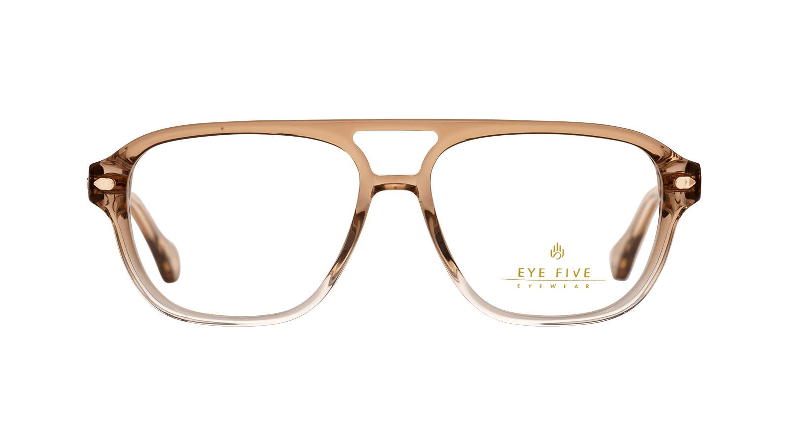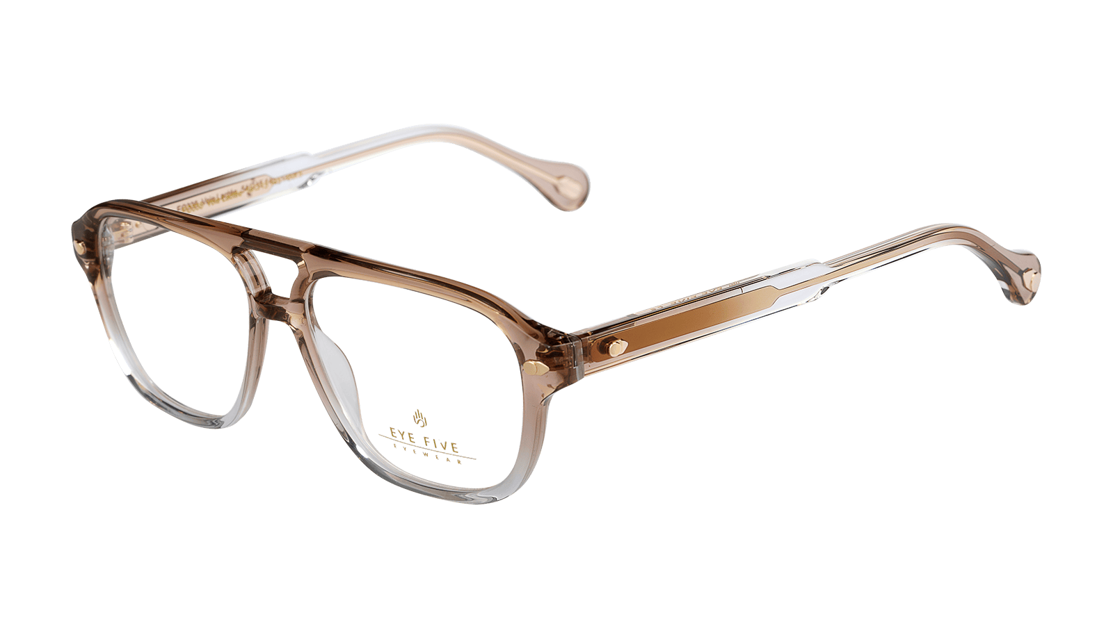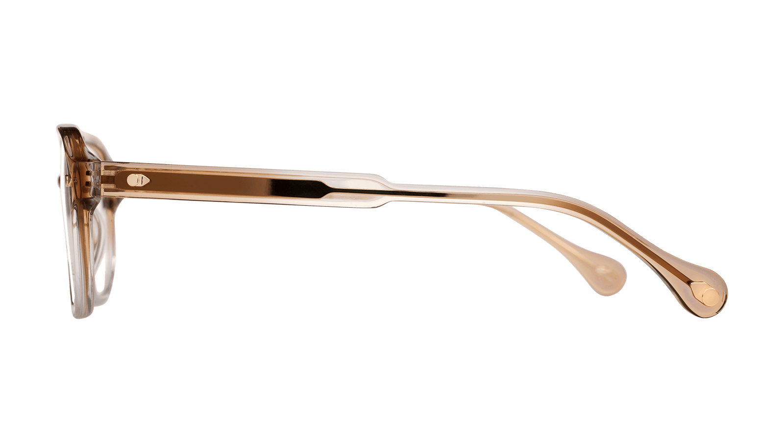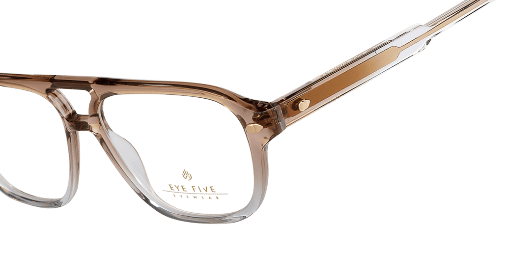 Monture en acétate brun dégradé cristal et métal doré.