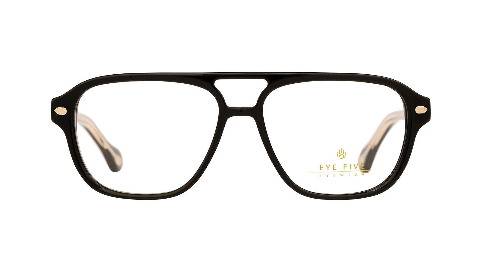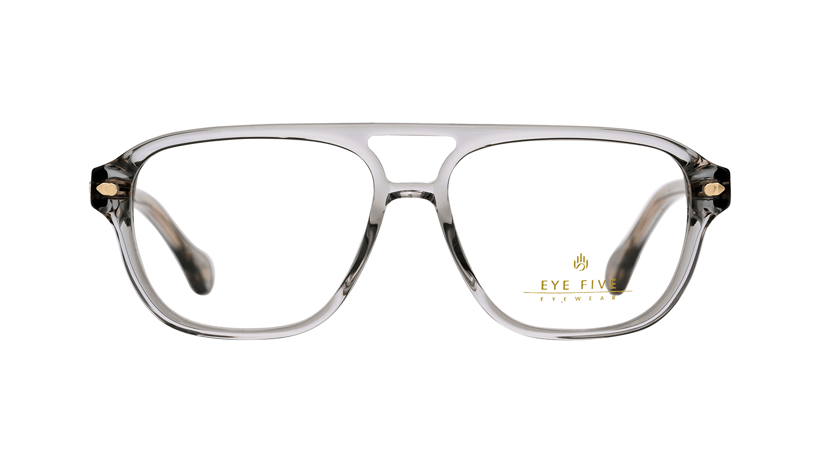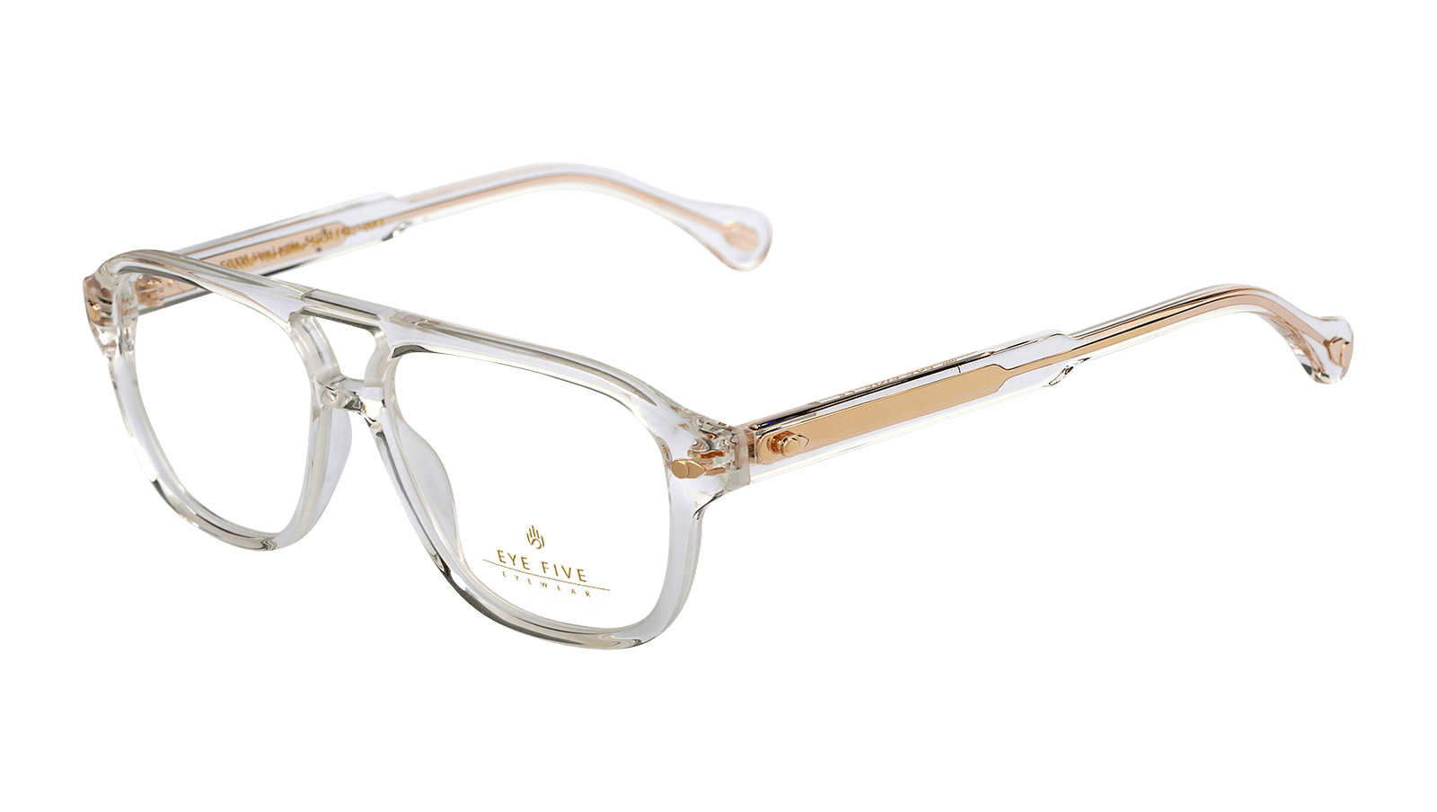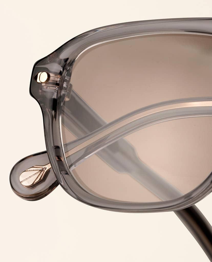 Monture en acétate brun dégradé cristal et métal doré.